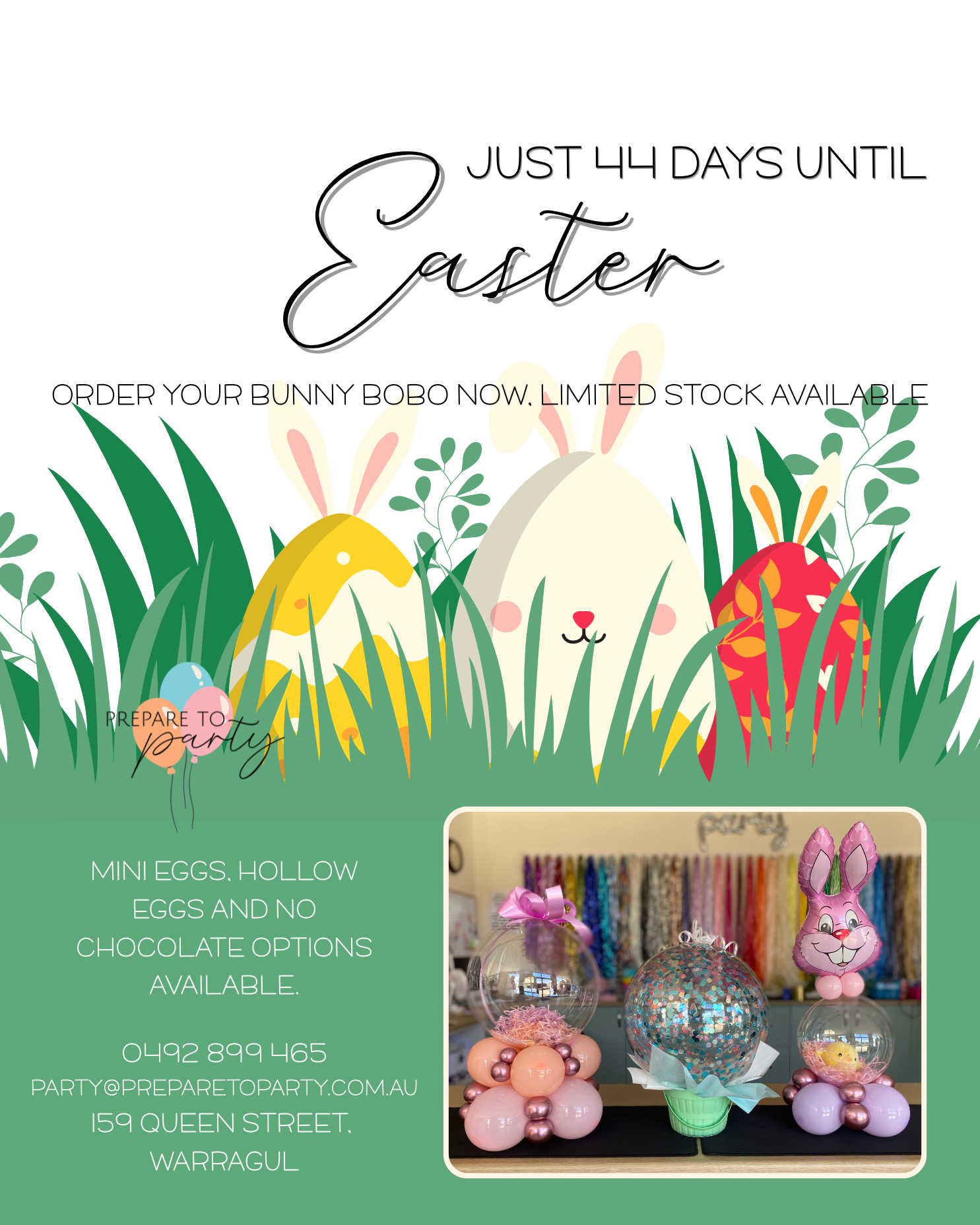 Order your Easter Bobo Balloons early to avoiod missing out as stock is limited. New to P2P are stuffed Bobo's, these make a perfect alternative gift, ideal for baby showers or arrivals. Keep an eye out on our socials for our Mother's Day Bobo's coming soon.
